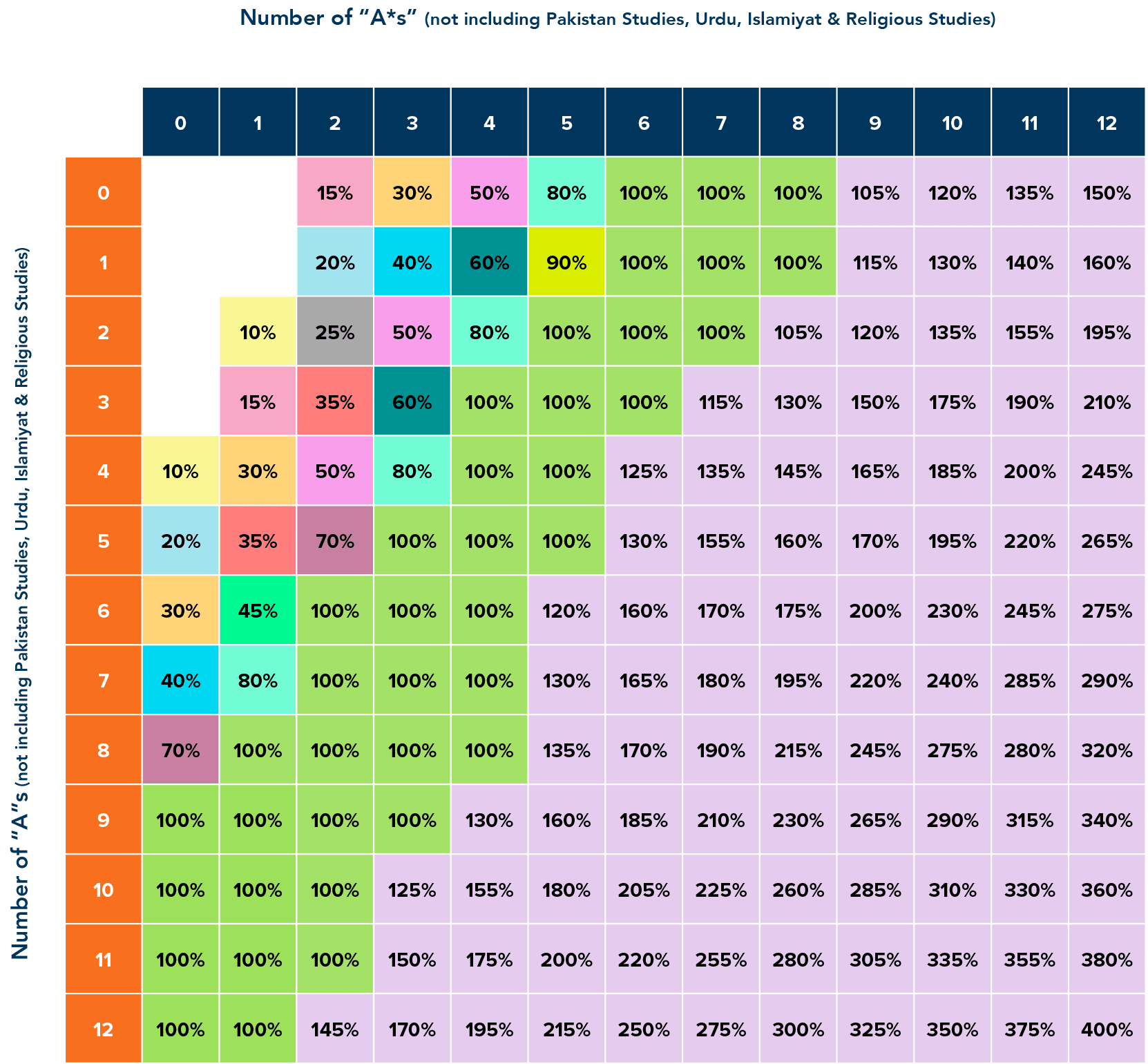 - Students applying in Round 1 will have the same scholarship applied on the tuition fee and admission fee regardless of whether the scholarship is secured at the time of admission and/or secured and/or increased on the basis of the final CAIE O Level results.